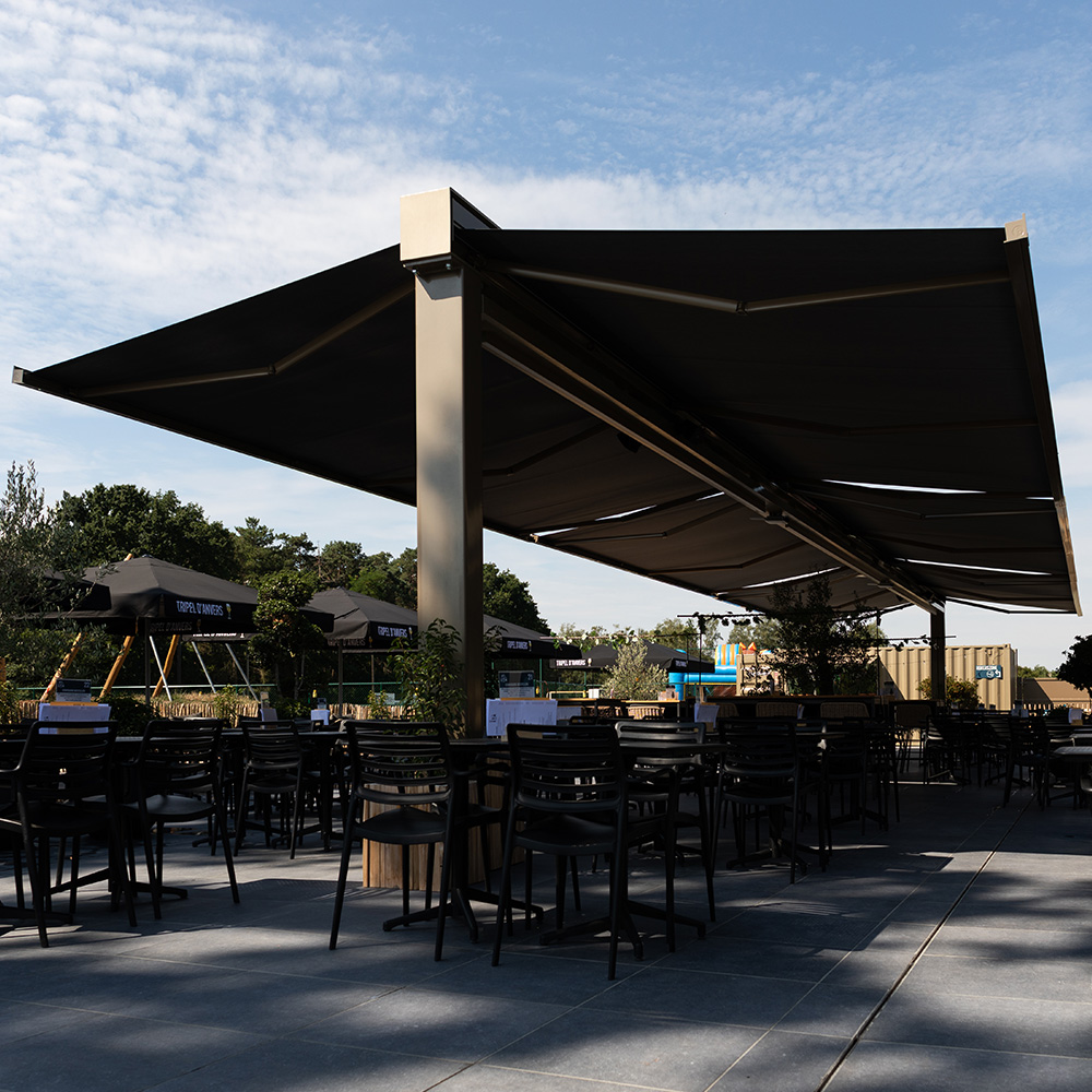 Mit unseren Markisen genießen Ihre Gäste selbst an heißen Tagen ein angenehm geschütztes Plätzchen im Außenbereich.